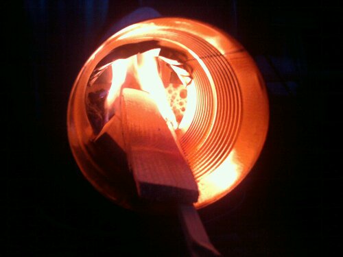 I guess if you can insulate the burn chamber, these things can burn so hot that they burn clean. Just carbon dioxide and water. This is my goal. If I melt the stove pipe, its all in the name of science. Maybe next time I will get the right kind of pipe.