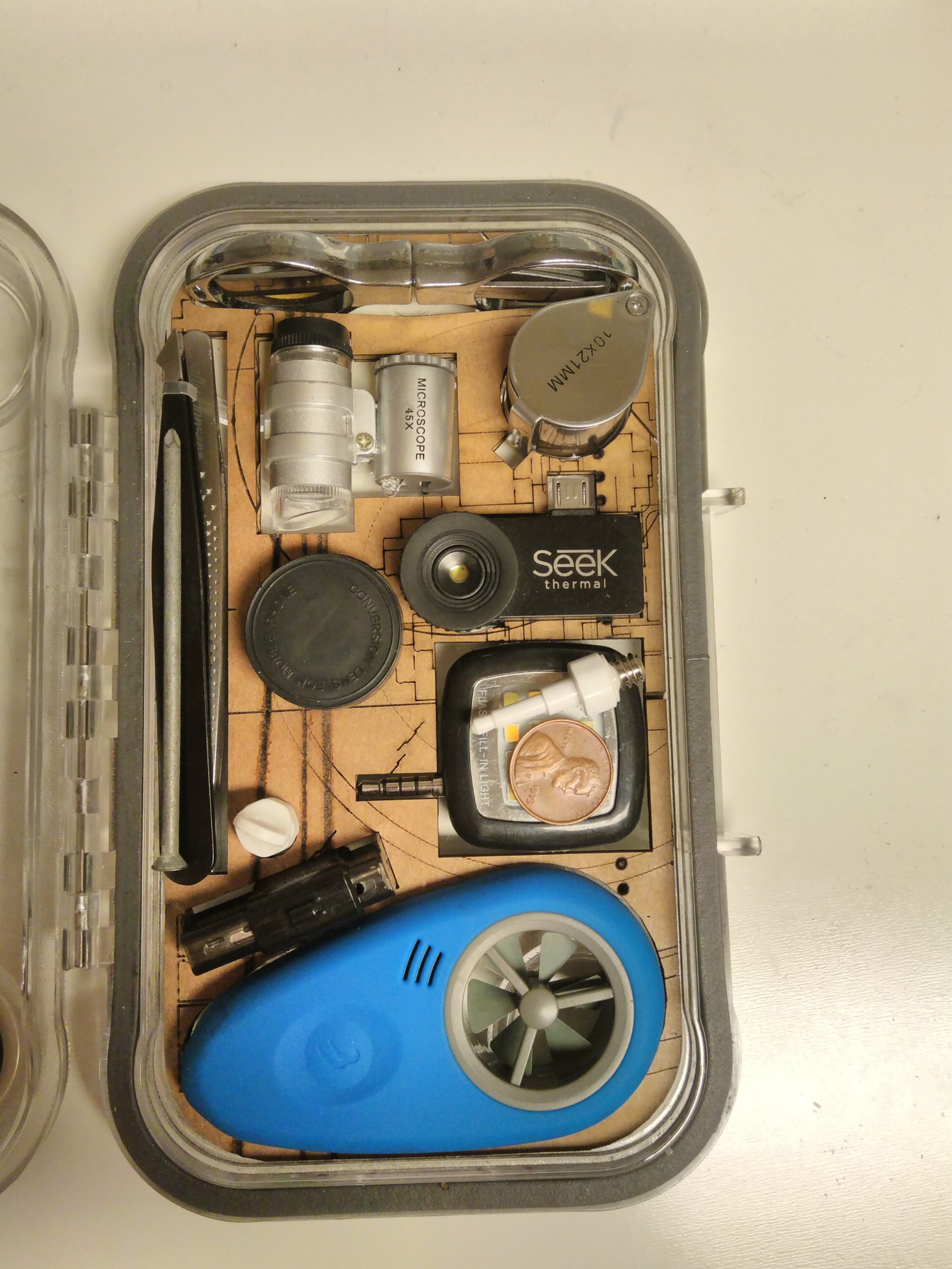 I added more items to the Mobile Science Lab. The main new item is a WeatherFlow WEATHERmeter. This is a pretty neat bluetooth device that captures wind speed and direction, temperature, humidity, and barometric pressure. New stuff means I needed to update the case. I fiddled a bit to get everything to fit. I think …
