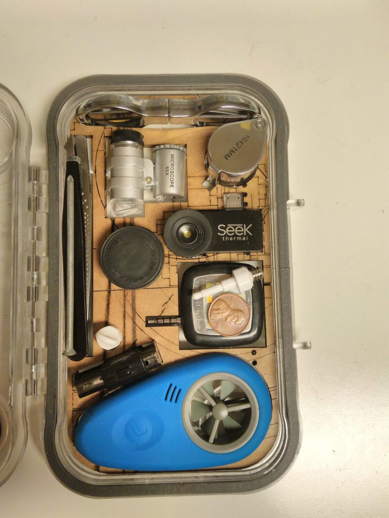 Here is my Mobile Science Lab. This is using a mobile phone as a computer and data collector that allows me to do ‘sciencey’ stuff on the go. It is a collection of phone apps, accessories, and general tools and items.